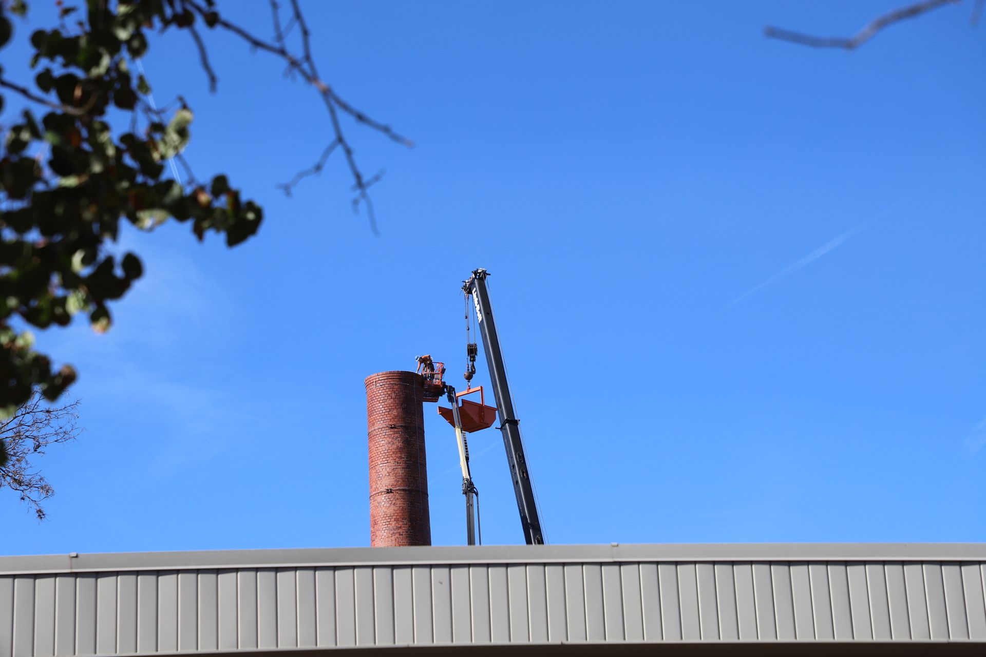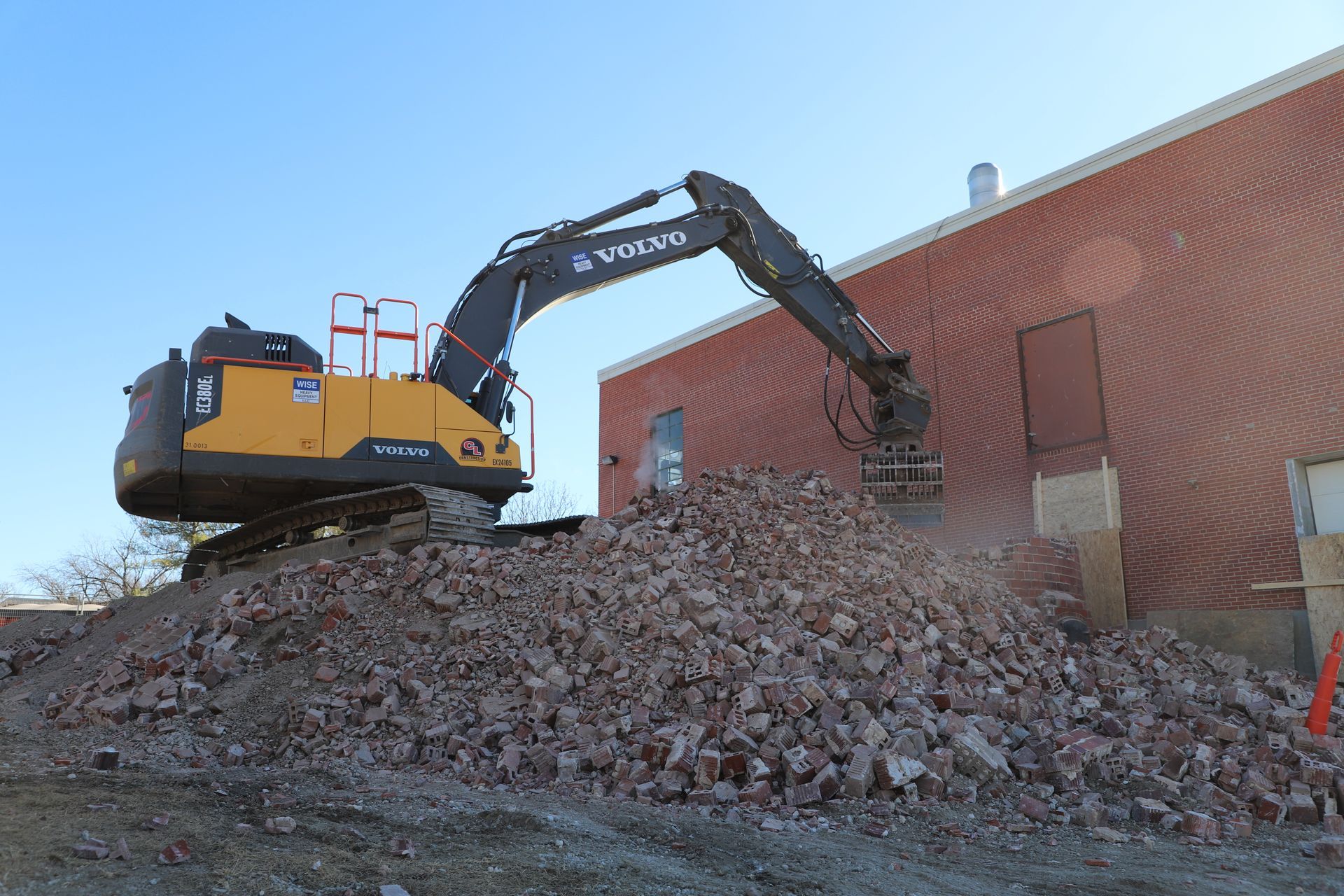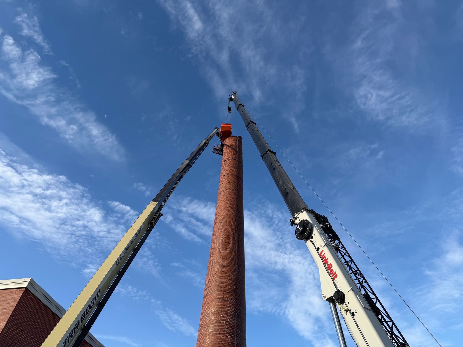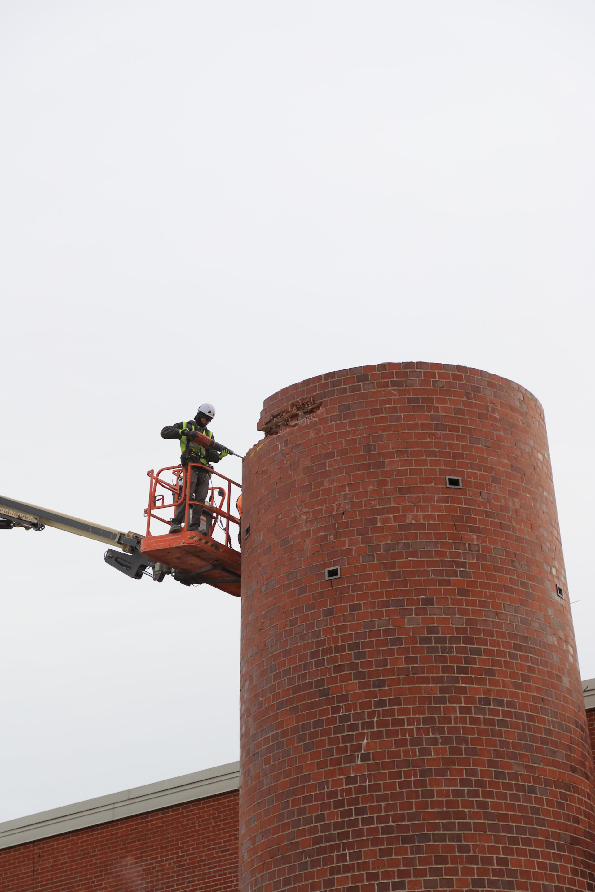 CL Construction completed the controlled demolition and removal of a 143‑foot tall brick smokestack at the Lincoln Regional Center Physical Plant. This project involved dismantling the existing masonry structure adjacent to active buildings with precision to ensure safety and protection of surrounding facilities.